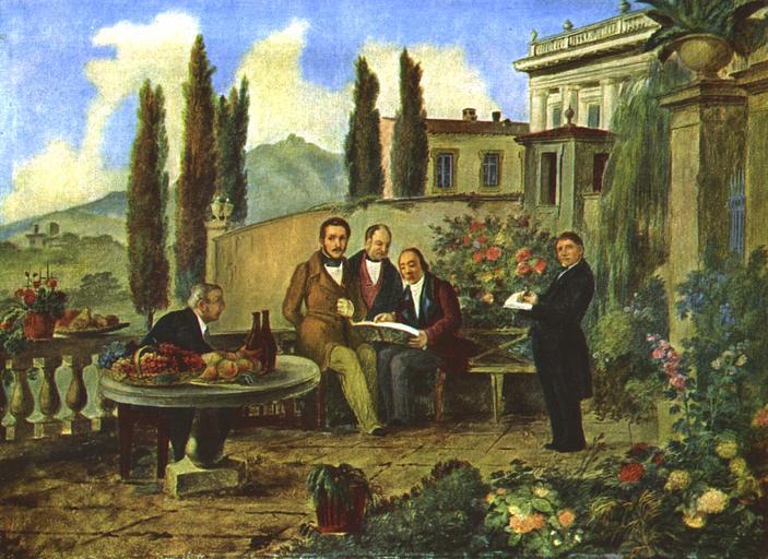 Keywords: Luigi Deleidi - Donizetti e amici.jpg <br/> Donizetti and friends - oil on canvas cm 68x49 - Bergamo Italy museo donizettiano - from left Bettinelli Gaetano Donizetti Dolci Simone Mayr and the autor Deleidi Donizetti e amici - Olio su tela cm 68x49 - Bergamo museo donizettiano - da sinistra l'oste Bettinelli Gaetano Donizetti Dolci Simone Mayr in piedi l'autore Deleidi Sandro Angelini - Bergamo d'altri tempi - 1964 pag 95 anno 1840 Luigi Deleidi detto il Nebbia 1774-1853 PD-100 Gaetano Donizetti Luigi Deleidi Museo Donizettiano Bergamo Simone Mayr 1840 paintings Romantic paintings in Bergamo |
