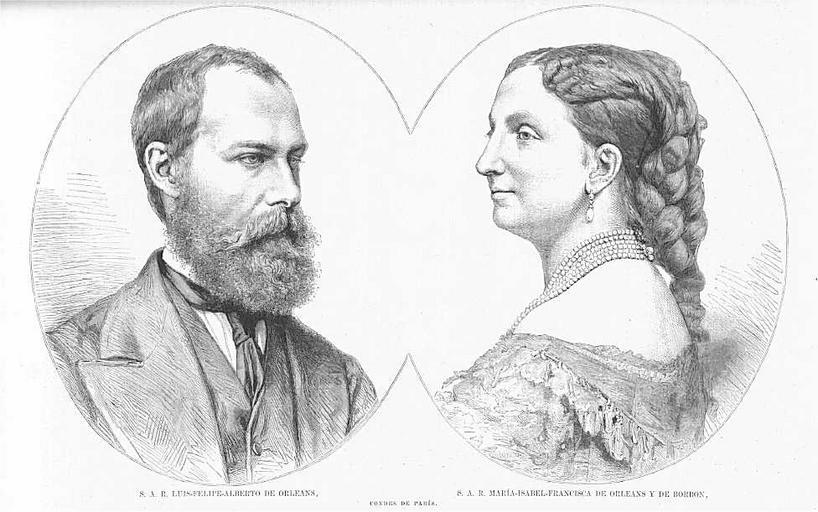 Keywords: Luis-Felipe-Alberto-de-Orleans-y-su-esposa-1878.jpg fr Louis Philippe Albert d'Orléans comte de Paris 1838-1894 avec son épouse et cousine paternelle Marie-Isabelle d'Orléans 1848-1894 fille d'Antoine d'Orléans duc de Montpensier et de l'infante Louise Fernande soeur de la reine d'Espagne Isabelle II it Luigi Filippo Alberto di Orleans conte di Parígi 1838-1894 con la moglie e cugina paterna Isabel de Orleans 1848-1919 figlia di Antonio de Orleans duca di Montpensier e dell'infanta Luisa Fernanda sorella della regina di Spagna Isabella II http //descargas cervantesvirtual com/servlet/SirveObras/02581896711347228537857/205195_011 pdf 30 La Ilustracion española y americana 30 1 1878 pag 68 La Ilustracion española y americana 1878-01-30 PD-old Prince Louis Philippe Count of Paris Princess Marie Isabelle of Orléans La Ilustración Española y Americana portraits People of Spain in 1878 1878 La Ilustración Española y Americana Lithographs of wedded couples |
