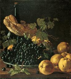 | Keywords: Luis Meléndez - Still Life with Bread, Apples, Grapes and a Bottle - Google Art Project.jpg  ~ 1771 1716 Naples 1716 1780 Madrid 1780 897228 1716 - 1780 /collection/museu-nacional-dart-de-catalunya/artwork/still-life-with-bread-apples-grapes-and-a-bottle-luis-melendez/548565/ Luis Meléndez /artist/luis-melendez/4129348/ 4129348 /collection/museu-nacional-dart-de-catalunya/ Museu Nacional d'Art de Catalunya - MNAC Barcelona 497131 http //www mnac cat/ 12/28/2011 4 44 38 PM /collection/museu-nacional-dart-de-catalunya/artwork/still-life-with-bread-apples-grapes-and-a-bottle-luis-melendez/548565/ 1771 Still life Oil on canvas True 410 548565 True 1771 Around 1771 /collection/museu-nacional-dart-de-catalunya/level/floor-1/2539705/ Floor 1 3/24/2012 3 36 10 AM 113239-000 http //art mnac cat/fitxatecnica html;jsessionid inventoryNumber 113239-000 lang en Museu Nacional d'Art de Catalunya Painting 1770 1780 w360 x h410 cm Around 1771 False 0 8984375 Object /collection/museu-nacional-dart-de-catalunya/level/floor-1/2539705/room-45/591479/ Room 45 still-life-with-bread-apples-grapes-and-a-bottle-luis-melendez Still Life with Bread Apples Grapes and a Bottle s 360 Donated by Joan Prats i Tomàs 1973 113239-000 Oil on canvas Still life special url_id qwGlSOQKT0YaZw PD-old-100-1923 1780 Google Art Project works by Luis Meléndez Luis Egidio Meléndez Renaissance and Baroque paintings in the MNAC Still life paintings |