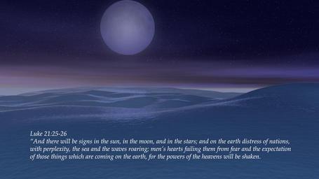 | Keywords: bible scripture god jesus holy spirit holyspirit angels church faith hope peace love joy holy bible holybible christian righteous jesus christ jesuschrist god the father godthefather king of kings kingofkings heaven archangel god is love godislove prince of peace princeofpeace creator christ the creator christthecreator god the creator godthecreator third heaven thirdheaven awesome alpha and omega alphaandomega wonderful glorious omnipotent almighty glorify hallelujah judgment judgment day judgmentday usa united states of america unitedstatesofamerica word of god wordofgod the lord is my shepherd thelordismyshepherd eternity confess repent repentance humble sinner humble yourself humbleyourself saved lost found salvation praise god praisegod amen word became flesh wordbecameflesh be strong bestrong courage spiritual warfare New King James Version (NKJV) And there will be signs in the sun, in the moon, and in the stars; and on the earth distress of nations, with perplexity, the sea and the waves roaring; men’s hearts failing them from fear and the expectation of those things which are coming on the earth, for the powers of the heavens will be shaken. New King James Version (NKJV) And there will be signs in the sun, in the moon, and in the stars; and on the earth distress of nations, with perplexity, the sea and the waves roaring; men’s hearts failing them from fear and the expectation of those things which are coming on the earth, for the powers of the heavens will be shaken. |