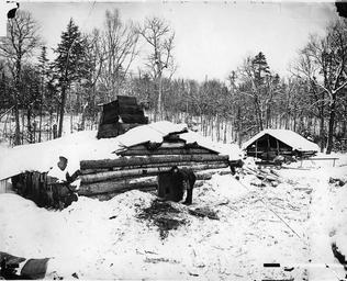 Keywords: Lumbermen's shanty, Muskoka District.jpg en A lumbermen's shanty Muskoka District Ontario Canada Cabane de bûcherons district de Muskoka Ontario Canada I-80963 creator William Notman 1873 PD-Canada PD-old-100 Muskoka District Municipality Shacks 1873 in Ontario Winter in Ontario Log cabins in Canada Logging in Canada Photographs by William Notman |