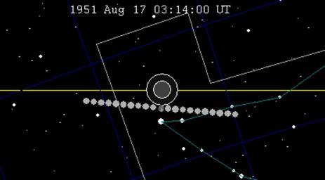 | Keywords: Lunar eclipse chart-1951Aug17.png en wikipedia 2011 October 24 August 2051 lunar eclipse chart The position of the moon and earth's shadow are shown as viewed from center of earth A small parallax effect occurs from specific location on surface of the earth The yellow line is the plane of the ecliptic path of the sun through the sky and hence the center of the earth's shadow The two concentric circles centered on this line show the extent of the umbra and penumbra the zones of full and partial shadow respectively for an object in the moon's orbit The moon is drawn at maximum eclipse and circles for every hour interval of motion thumb 2009-4-11 Own <br />Transferred from http //en wikipedia org en wikipedia SockPuppetForTomruen at http //en wikipedia org en wikipedia en wikipedia SockPuppetForTomruen Original upload log page en wikipedia Lunar_eclipse_chart-1951Aug17 png 2009-04-11 05 52 SockPuppetForTomruen 679×493 12047 bytes <nowiki> Summary February 2051 lunar eclipse chart The position of the moon and earth's shadow are shown as viewed from center of earth A small parallax effect occurs from specific location on surface of the earth The yellow line is the plane of t</nowiki> 2009-04-15 01 47 SockPuppetForTomruen 416×230 9083 bytes <nowiki>replace</nowiki> Lunar eclipse of 2008 February 21 1989 in astronomy 21st century lunar eclipses |