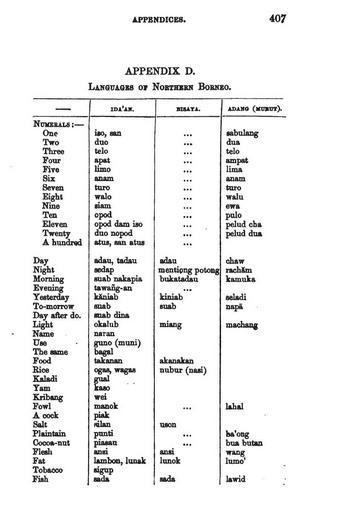 | Keywords: LunbawangLanguageList.jpg Screenshot of a page of List of words in English and translation in Idahan Bisaya and Adang Murut Spenser St John 1860 'Life in the Forest of the Far East Vol II Smith Elder and Co 65 Cornhill London viewed 2 April 2008 pp 407 <http //books google com/books id AXBCAAAAIAAJ printsec titlepage source gbs_summary_r cad 0 PPR3 M1 2008-10-04 Danazach created from a screenshot of a digitalized Spencer St John's book Life in the Forest of the Far East 1860 using Adobe Reader Snapshot tool free screenshot GPL PD-Art Ethnic groups in Malaysia History of Sarawak |