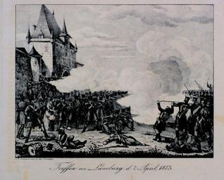 | Keywords: Lüneburg Schlacht 1813.jpg Die Bilder enstanden anläßlich eines Workshops im Rahmen von Skillshare 2010 in Zusammenarbeit mit dem Stadtarchiv Lüneburg Die Originale wurden freundlicherweise vom Stadtarchiv zur Verfügung gestellt Truppen vor Lüneburg am 2 April 1813 F A Frenzel 1782-1855 Kupferstecher Registratur K 10 Nr 57 k Lüneburg_Schlacht_18130402_9082 jpg 50 2012-04-13 21 20 UTC Lüneburg_Schlacht_18130402_9082 jpg F A Frenzel derivative work An-d zugschnitten heller Kontrast erhöht Lüneburg_Schlacht_18130402_9082 jpg PD-old Original upload log This image is a derivative work of the following images File Lüneburg_Schlacht_18130402_9082 jpg licensed with PD-old 2010-06-09T16 22 28Z Joergens mi 3366x2771 1419102 Bytes <nowiki></nowiki> Uploaded with derivativeFX 1813 in Lower Saxony Befreiungskriege De Wikisource book leaflet Historical images of Lüneburg Lüneburg in the 1810s Skillshare 2010 Stadtarchiv Stadtarchiv Lüneburg Jömi 201010 Taken with Pentax K20D |