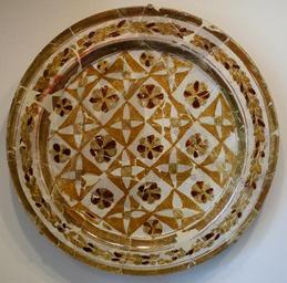 Keywords: Luster-painted plate, Iraq, Abbasid period, 9th or 10th century AD, earthenware with amber and manganese-purple painting over white slip and transparent lead glaze - Cincinnati Art Museum - DSC04158.JPG en Exhibit in the Cincinnati Art Museum Cincinnati Ohio USA This artwork is in the public domain because the artist died more than 70 years ago Photography was permitted in the museum without restriction 2013-05-14 11 37 06 own Daderot cc-zero Abbasid pottery in the Cincinnati Art Museum Uploaded with UploadWizard Lead-glazing |