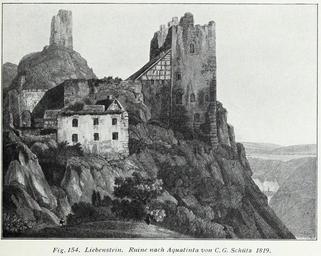 Keywords: Luthmer V - 154 - Liebenstein Ruine nach Aquatinta von C G Schütz 1819.jpg Liebenstein Ruine nach Aquatinta von C G Schütz 1819 Die Bau- und Kunstdenkmäler der Kreise Unter-Westerwald St Goarshausen Untertaunus und Wiesbaden Stadt und Land Keller Frankfurt am Main 1914 https //archive org/stream/bauundkunstdenkm05luth page/n0/mode/2up Ferdinand Luthmer 1914 PD-old-70-1923 Images from Bau- und Kunstdenkmäler des Regierungsbezirks Wiesbaden Volume 5 Burg Liebenstein Rhein |