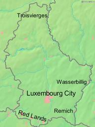 Keywords: Luxembourg World War I labelled.png A map of Luxembourg with some urban areas marked in salmon These urban areas from north to south are Troisvierges Wiltz Diekirch Ettelbruck Echternach Wasserbillig Steinfort Luxembourg City Remich Differdange Esch-sur-Alzette Dudelange and Rumelange Some of these towns were chosen to be demarcated to suit the purposes of the article w German occupation of Luxembourg in World War I so should not be seen as being the largest towns in the country Own work based on Image La2-demis-luxembourg png 2006-08-15 Bastin Released into the public domain See licence below Unlabelled version Image Luxembourg Demis 2 png Check categories 2008 November 19 en wikipedia German_occupation_of_Luxembourg_in_World_War_I Featured article Luxembourg in World War I Western Front maps of World War I Luxembourg |