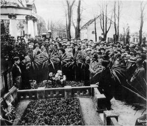 | Keywords: Lviv,New Jewish cemetery,Cemetery Synagogue.jpg ru Делегаты К аевой сионистской конфе енции на могиле п едводителя сионистского движения в Галиции Леона Райха на овом ев ейском кладбище на ул Пилиховской во Львове Сп ава - синагога Алос Эф аим овокладбищенская синагога возведенная в 1856 г и уничтоженная нацистами в 1941 г 1930-04-21 Chwila Dodatek ilustrowany Lwów 27-04-1930 14 author other versions PD-Art Judaism in Lviv Historical images of Lviv Synagogues in Lviv Jewish cemetery in Lviv |