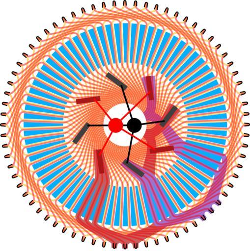 Keywords: Lynch-motor-armature-current-flow.svg en Diagram of typical w Lynch motor w permanent magnet w brushed DC electric motor drawn with 72 poles This shows the w armature electrical engineering that spins and its interface with the the w brush electric arrangement and the sub-divided w ferrite cores Two example w electric current flowes are shown in red and blue from the commutator electric brushes in the centre out via the front surface between the iron pieces to the w crimp joining locations at the edge then back to the centre via the rear side of the armature and to a brush of the opposite w electrical polarity 135 degrees afterwards 2013-10-18 12 52 00 own drawn in w Inkscape Paul Sladen cc-zero Uploaded with UploadWizard Lynch motor |