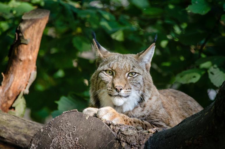 Keywords: lynx bobcat wildlife predator nature outdoors wild portrait perched log big cat hunter looking