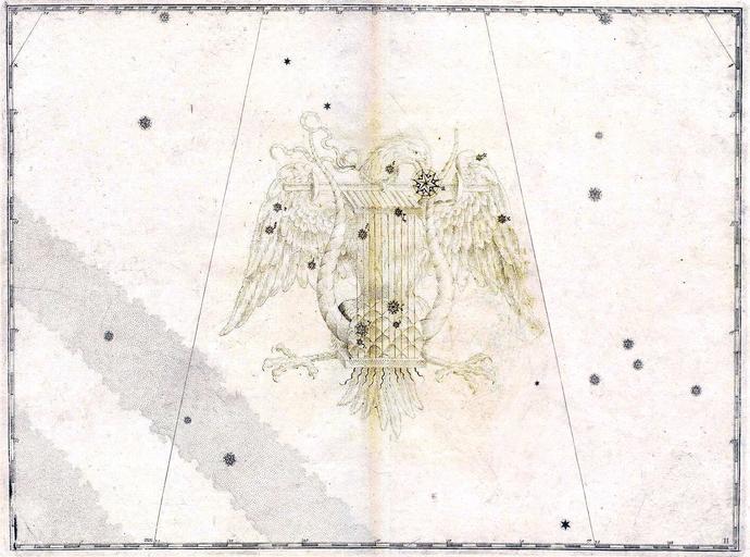 Keywords: Lyra-Vega-Uranometria.jpg The constellation of Lyra Uranometria Созвездие Ли ы в атласе У аномет ия Вега изоб ажена в клюве о ла де жащего ли у Файл Lyra-Vega-Uranometria jpg Johann Bayer ru Байе Иоганн PD-art Lyra Uranometria