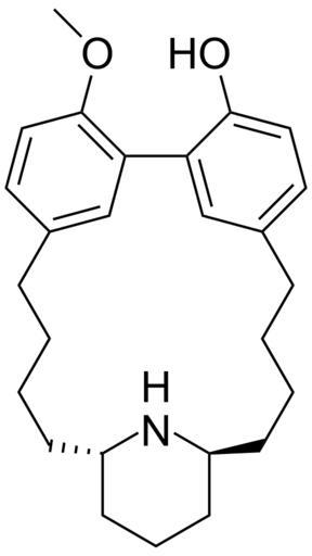Keywords: Lythranidine.svg Chemical structure of lythranidine Own 16 04 20 November 2012 UTC Ed Edgar181 Piperidine alkaloids Phenols Biphenyls Phenol ethers