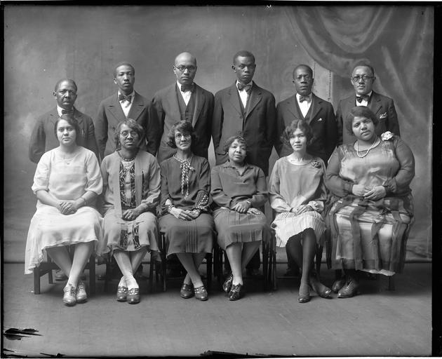| Keywords: black group portrait virginia african-american africanamerican studio blackandwhite groupshot people monochrome team sport sport black and white Creator: Michael Miley Studio, Lexington, VA Date: unknown Identifier: Michael Miley Collection M(and then the number of the photo) Format: Glass plate negative Rights Info: No known restrictions on publication. Repository: Library of Virginia, Prints and Photographs, 800 E. Broad St., Richmond, VA, 23219, USA Creator: Michael Miley Studio, Lexington, VA Date: unknown Identifier: Michael Miley Collection M(and then the number of the photo) Format: Glass plate negative Rights Info: No known restrictions on publication. Repository: Library of Virginia, Prints and Photographs, 800 E. Broad St., Richmond, VA, 23219, USA |
