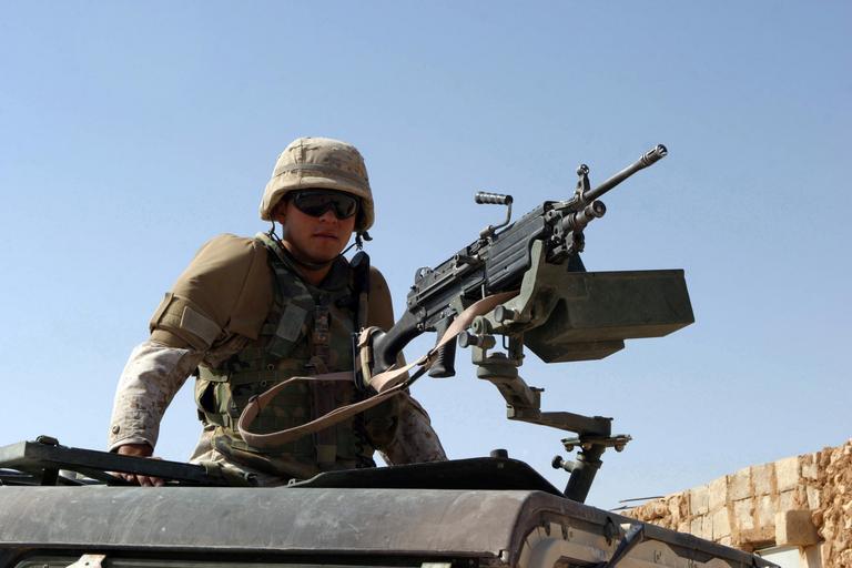 Keywords: M249 FN MINIMI DM-SD-06-04197.jpg US Marine Corps USMC Lance Corporal LCPL Steve Reyes wearing dark glasses Weapons Company Co 2nd Battalion BN 7th Marine Regiment 1st Marine Division MARDIV stands up through a High-Mobility Multipurpose Wheeled Vehicle HMMWV M1038 Up-Armored Heavy Cargo/Troop Carrier roof turret hole and readies the FNMI 5 56 mm M249 Squad Automatic Weapon SAW while participating in a Security and Stabilization Operation SASO in Abu Hayat Al Anbar Province Iraq conducted during Operation IRAQI FREEDOM Location ABU HAYAT AL ANBAR IRAQ IRQ Camera Operator LCPL KEVIN C QUIHUIS JR USMC Date Shot 29 Jul 2004 source http //www dodmedia osd mil/DVIC_View/Still_Details cfm SDAN DMSD0604197 JPGPath /Assets/Still/2006/Marines/DM-SD-06-04197 JPG PD-USGov M249 light machine guns |