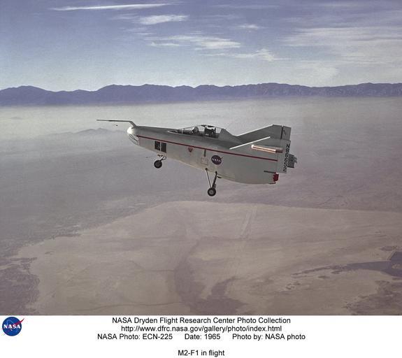 | Keywords: M2-F1 in flight DVIDS709136.jpg en The M2-F1 Lifting Body is seen here under tow high above Rogers Dry Lake near the Flight Research Center later redesignated the Dryden Flight Research Center Edwards California R Dale Reed effectively advocated the project with the support of NASA research pilot Milt Thompson Together they gained the support of Flight Research Center Director Paul Bikle After a six-month feasibility study Bikle gave approval in the fall of 1962 for the M2-F1 to be built The wingless lifting body aircraft design was initially concieved as a means of landing an aircraft horizontally after atmospheric reentry The absence of wings would make the extreme heat of re-entry less damaging to the vehicle In 1962 Flight Research Center management approved a program to build a lightweight unpowered lifting body as a prototype to flight test the wingless concept It would look like a flying bathtub and was designated the M2-F1 the M referring to manned and F referring to flight version It featured a plywood shell placed over a tubular steel frame crafted at Dryden Construction was completed in 1963 The first flight tests of the M2-F1 were over Rogers Dry Lake at the end of a tow rope attached to a hopped-up Pontiac convertible driven at speeds up to about 120 mph These initial tests produced enough flight data about the M2-F1 to proceed with flights behind a NASA C-47 tow plane at greater altitudes The C-47 took the craft to an altitude of 12 000 where free flights back to Rogers Dry Lake began Pilot for the first series of flights of the M2-F1 was NASA research pilot Milt Thompson Typical glide flights with the M2-F1 lasted about two minutes and reached speeds of 110 to l20 mph More than 400 ground tows and 77 aircraft tow flights were carried out with the M2-F1 The success of Dryden's M2-F1 program led to NASA's development and construction of two heavyweight lifting bodies based on studies at NASA's Ames and Langley research centers--the M2-F2 and the HL-10 both built by the Northrop Corporation and the U S Air Force's X-24 program The Lifting Body program also heavily influenced the Space Shuttle program The M2-F1 program demonstrated the feasibility of the lifting body concept for horizontal landings of atmospheric entry vehicles It also demonstrated a procurement and management concept for prototype flight research vehicles that produced rapid results at very low cost approximately 50 000 excluding salaries of government employees assigned to the project NASA Identifier NIX_ECN-225 2009-12-10 Glenn Research Center https //www dvidshub net/image/709136 709136 2012-10-10 16 33 WASHINGTON DC US PD-USGov NASA M2-F1 Images from DoD uploaded by Fæ |
