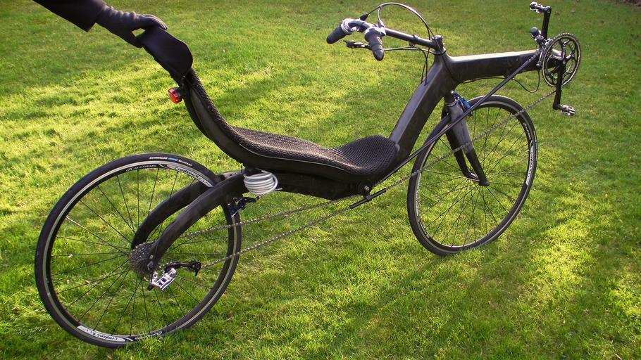 | Keywords: M5 Carbon High Racer.jpg en M5 Carbon High Racer displaying the right and rear side The frame is constructed using carbon fibers The recumbent bicycle has 28 700C wheels 2012-01-15 14 50 37 own Johnh cc-zero Uploaded with UploadWizard Recumbent bicycles Carbon fibres |