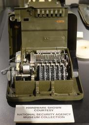 Keywords: M-209 mechanical cipher machine, Smith Corona - National Electronics Museum - DSC00201.JPG en Exhibit in the National Electronics Museum 1745 West Nursery Road Linthicum Maryland USA All items in this museum are unclassified The museum permitted photography without restriction 2014-07-21 14 48 08 own Daderot cc-zero Uploaded with UploadWizard Cryptography equipment in the National Electronics Museum M-209 |