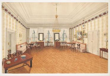 Keywords: M. Sekim - A Room in the Governor's Residence, Hermannstadt - Google Art Project.jpg M 6842404 Sekim /collection/cooper-hewitt-national-design-museum/artwork/a-room-in-the-governors-residence-hermannstadt-m-sekim/6836623/ 229929 M Sekim /artist/m-sekim/12690734/ 12690734 /collection/cooper-hewitt-national-design-museum/ Cooper-Hewitt National Design Museum 3644669 http //www cooperhewitt org/ 3/12/2012 5 37 43 PM /collection/cooper-hewitt-national-design-museum/artwork/a-room-in-the-governors-residence-hermannstadt-m-sekim/6836623/ 1841 1841 Brush and watercolor and gouache with accents of gold paint Eugene V Thaw Collection; York House New York 1987 6836623 False 1841 3/25/2012 1 06 16 PM 2007-27-32 http //collection cooperhewitt org/view/objects/asitem/id/229929 Thaw Collection Drawing 1840 1850 1841 False 1 45042492917847 Object a-room-in-the-governors-residence-hermannstadt-m-sekim A Room in the Governor's Residence Hermannstadt a Gail S Davidson et al House Proud Nineteenth-century Watercolor Interiors from the Thaw Collection New York Cooper-Hewitt National Design Museum Smithsonian Institution 2008 103 pl 32 Charlotte Gere an Album of Nineteenth-Century Interiors Watercolors from Two Private Collections New York The Frick Collection 1992 60-61 Illus Charlotte Gere Nineteenth-Century Decoration The Art of the Interior New York Harry N Abrams Inc 1989 192-193 Illus Frame H x W x D 44 8 x 60 3 x 2 5 cm 17 5/8 x 23 3/4 x 1 in Sheet 33 4 x 50 2 cm 13 1/8 x 19 3/4 in New York NY Cooper-Hewitt National Design Museum Smithsonian Institution House Proud Nineteenth-Century Watercolor Interiors from the Thaw Collection August 12 2008-January 25 2009 Oneonta NY 18th and 19th Century Watercolors of European Domestic Interiors 1987 No 13 On reverse Salon der Grosseltern Wernhardt/ in Hermannstadt 1835 Paul Freiherr von Wernhardt Gouverneur von Siebenburgen Brush and watercolor and gouache with accents of gold paint Eugene V Thaw Collection; York House New York 1987 Mid-center right M Sekim/ 841 special url_id iQGhTGZABPwzrw PD-old-70 Google Art Project works by M Sekim Watercolors of building interiors in the Cooper “Hewitt Smithsonian Design Museum Google Art Project works in Cooper-Hewitt Smithsonian Design Museum Buildings in Sibiu 1840s interiors in art |