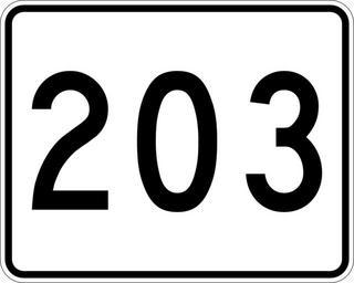 Keywords: MA Route 203.svg 750 mm by 600 mm 30 in by 24 in Massachusetts Route shield made to the specifications of the http //166 90 180 162/mhd/downloads/manuals/1996Mconst pdf 1996 edition of Construction and Traffic Standard Details sign M1-5 Uses the http //www triskele com/fonts/index html Roadgeek 2005 fonts United States law does not permit the copyrighting of typeface designs and the fonts are meant to be copies of a U S Government-produced work anyway The outside border has a width of 1 1 mm and a color of black so it shows up; in reality signs have no outside border The specs actually do not show the curve on the outside border instead making it a perfect rectangle but all signs I have seen round the corners Note The specs specify Series D font for the numbers However that font does not fit when none of the characters is a one and so those signs actually use Series C This image is true to real signs not the specs own SPUI spuiother Diagrams of Massachusetts Route shields |
