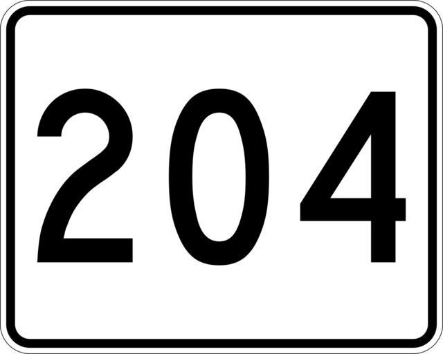 Keywords: MA Route 204.svg 750 mm by 600 mm 30 in by 24 in Massachusetts Route shield made to the specifications of the http //166 90 180 162/mhd/downloads/manuals/1996Mconst pdf 1996 edition of Construction and Traffic Standard Details sign M1-5 Uses the http //www triskele com/fonts/index html Roadgeek 2005 fonts United States law does not permit the copyrighting of typeface designs and the fonts are meant to be copies of a U S Government-produced work anyway The outside border has a width of 1 1 mm and a color of black so it shows up; in reality signs have no outside border The specs actually do not show the curve on the outside border instead making it a perfect rectangle but all signs I have seen round the corners Note The specs specify Series D font for the numbers However that font does not fit when none of the characters is a one and so those signs actually use Series C This image is true to real signs not the specs own SPUI spuiother Diagrams of Massachusetts Route shields |