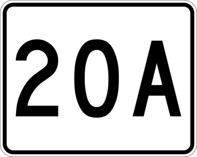 Keywords: MA Route 20A.svg 750 mm by 600 mm 30 in by 24 in Massachusetts Route shield made to the specifications of the http //166 90 180 162/mhd/downloads/manuals/1996Mconst pdf 1996 edition of Construction and Traffic Standard Details sign M1-5 Uses the http //www triskele com/fonts/index html Roadgeek 2005 fonts United States law does not permit the copyrighting of typeface designs and the fonts are meant to be copies of a U S Government-produced work anyway The outside border has a width of 1 1 mm and a color of black so it shows up; in reality signs have no outside border The specs actually do not show the curve on the outside border instead making it a perfect rectangle but all signs I have seen round the corners Note The specs specify Series D font for the numbers However that font does not fit when none of the characters is a one and so those signs actually use Series C This image is true to real signs not the specs own SPUI spuiother Diagrams of Massachusetts Route shields |