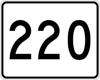 Keywords: MA Route 220.svg 750 mm by 600 mm 30 in by 24 in Massachusetts Route shield made to the specifications of the http //166 90 180 162/mhd/downloads/manuals/1996Mconst pdf 1996 edition of Construction and Traffic Standard Details sign M1-5 Uses the http //www triskele com/fonts/index html Roadgeek 2005 fonts United States law does not permit the copyrighting of typeface designs and the fonts are meant to be copies of a U S Government-produced work anyway The outside border has a width of 1 1 mm and a color of black so it shows up; in reality signs have no outside border The specs actually do not show the curve on the outside border instead making it a perfect rectangle but all signs I have seen round the corners Note The specs specify Series D font for the numbers However that font does not fit when none of the characters is a one and so those signs actually use Series C This image is true to real signs not the specs own SPUI spuiother Diagrams of Massachusetts Route shields |