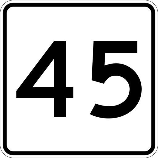 | Keywords: MA Route 45.svg 600 mm by 600 mm 24 in by 24 in Massachusetts Route shield made to the specifications of the http //166 90 180 162/mhd/downloads/manuals/1996Mconst pdf 1996 edition of Construction and Traffic Standard Details sign M1-5 Uses the http //www triskele com/fonts/index html Roadgeek 2005 fonts United States law does not permit the copyrighting of typeface designs and the fonts are meant to be copies of a U S Government-produced work anyway The outside border has a width of 1 1 mm and a color of black so it shows up; in reality signs have no outside border The specs actually do not show the curve on the outside border instead making it a perfect square but all signs I have seen round the corners own SPUI spuiother Diagrams of Massachusetts Route shields 45 number |