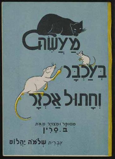 | Keywords: children's literature childrensliterature hebrew children's books childrensbooks yeshiva university museum yeshivauniversitymuseum jewish illustratedbooks childhood jews animals school children schoolchildren text Description: Children's book with the title: Maaseh be-Ahbar ve-hatul Akhzar / A Story of a Mouse and a Cruel Cat. Entire book and English translation available here. Creator/Author: Saryn, Ber, 1907-1942 Creator/Author: Yahalom, Shlomo . Dimensions: 17 x 12 centimeters Dimensions: 8 pages Publisher: U. Margolis and S. Klaczko. Date: Vilna, 1937 Persistent URL: digital.cjh.org/R/?func=dbin-jump-full&amp;object_id=313834 Repository: Yeshiva University Museum, 15 West 16th Street, New York, NY 10011 Call Number: 1998.891 Rights Information: No known copyright restrictions; may be subject to third party rights. For more copyright information, click here. See more information about this image and others at CJH Digital Collections. Digital images created by the Gruss Lipper Digital Laboratory at the Center for Jewish History Description: Children's book with the title: Maaseh be-Ahbar ve-hatul Akhzar / A Story of a Mouse and a Cruel Cat. Entire book and English translation available here. Creator/Author: Saryn, Ber, 1907-1942 Creator/Author: Yahalom, Shlomo . Dimensions: 17 x 12 centimeters Dimensions: 8 pages Publisher: U. Margolis and S. Klaczko. Date: Vilna, 1937 Persistent URL: digital.cjh.org/R/?func=dbin-jump-full&object_id=313834 Repository: Yeshiva University Museum, 15 West 16th Street, New York, NY 10011 Call Number: 1998.891 Rights Information: No known copyright restrictions; may be subject to third party rights. For more copyright information, click here. See more information about this image and others at CJH Digital Collections. Digital images created by the Gruss Lipper Digital Laboratory at the Center for Jewish History <strong>Description:</strong> Children's book with the title: Maaseh be-Ahbar ve-hatul Akhzar / A Story of a Mouse and a Cruel Cat. Entire book and English translation available <a href="http://digital.cjh.org/R/?func=dbin-jump-full&object_id=313834" target="_blank" rel="nofollow">here.</a>