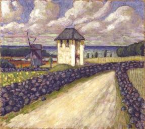 Keywords: Maastik kellatorniga. konradmagi.jpg en A landscape with a bell tower Oil on canvas 61 6 x 68 2 cm et Maastik kellatorniga Õli lõuendil 61 6 x 68 2 cm http //www haus ee/teose popup php s pilt z 1016 kon 1 form 0 Creator Konrad Mägi 1913-1914 PD-old Konrad Mägi Kihelkonna |
