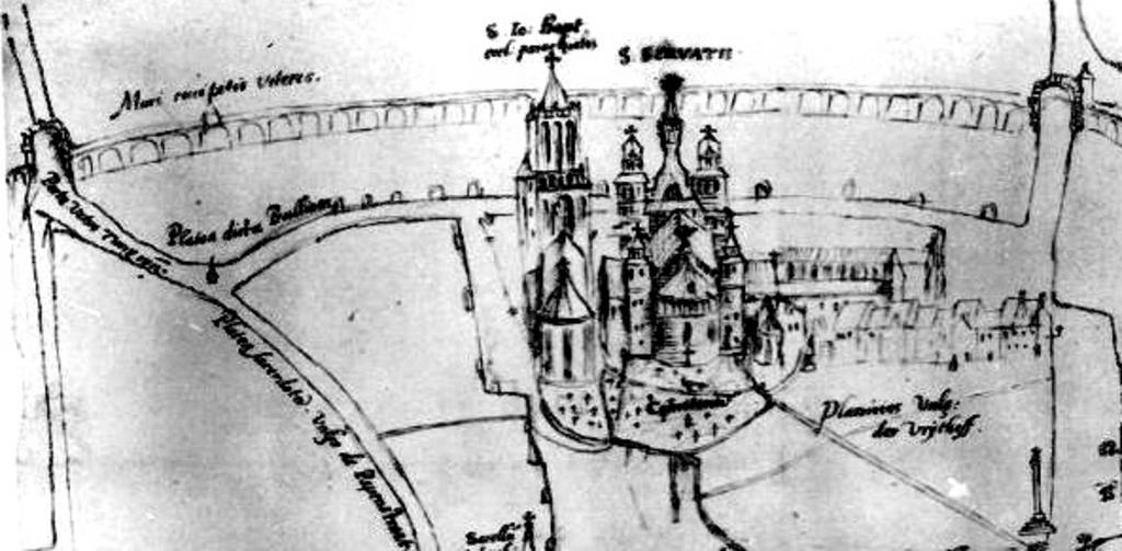 | Keywords: Maastricht, detail van plattegrond uit ca 1580 met St-Servaaskerk en Boichgraeve.jpg en Maastricht the Netherlands Detail of a sketch of the central area of Maastricht by Simon de Bellomonte 1587 Here the city wall Boichgraeve between the two city gates of Lenculenpoort and Tweebergenpoort west of the church of Saint Servatius Collection of the Bibliothèque national de France Paris 2015-01-26 10 35 19 https //commons wikimedia org/wiki/File Plattegrond_-_Maastricht_-_20145261_-_RCE jpg Simon de Bellomonte 1526-1615 other versions Custom license marker 2015 01 27 PD-100 Sketch of Maastricht by Simon de Bellomonte Uploaded with UploadWizard Sint-Servaasbasiliek Maastricht First Medieval city wall of Maastricht City gates in Maastricht |