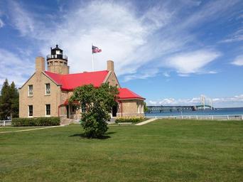 Keywords: mackinac mackinac bridge mackinac city old mackinac point lighthouse great lakes michigan water suspension bridge bridge lighthouse