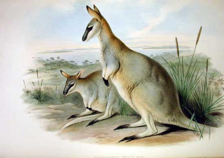 Keywords: Macropus greyi - Gould.jpg Macropus greyi orig Halmaturus greyi John Gould F R S Mammals of Australia Vol II Plate 19 London 1863 <br> http //www museum vic gov au/bioinformatics/mammals/images/Hal_grey htm 1863 creator John Gould PD-old-100-1923 Macropus greyi The Mammals of Australia John Gould Extinct mammals illustrated while extant |