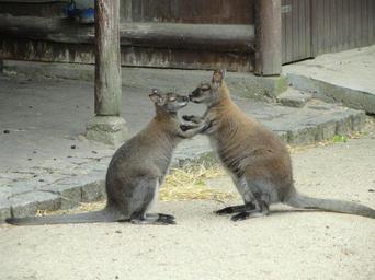 Keywords: Macropus rufogriseus - Copenhagen Zoo - DSC08999.JPG Copenhagen Zoo Frederiksberg Copenhagen Denmark Daderot 2012-05-12 04 05 52 Daderot cc0 cc0 Mammals in Copenhagen Zoo Macropus rufogriseus in zoos Mammals kissing