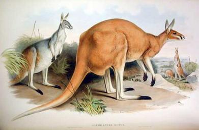 Keywords: Macropus rufus 2 Gould.jpg Macropus rufus Mammals of Australia Vol II Plate 7 <br> http //www museum vic gov au/bioinformatics/mammals/images/Osp_rufu htm 1863 Creator John Gould domaine public en raison de l'âge PD-old-100 Kangaroos in art Macropus rufus The Mammals of Australia John Gould |