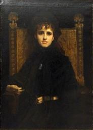 Keywords: Madam Georges Bizet by Jules-Élie Delaunay (colour).jpg A woman clothed in black sits in a high-back wooden chair She stares directly in front of her Her left hand rests in her lap while her right lays on the chair's arm rest 1878 Oil on canvas in 40 875 29 5 Musée d'Orsay Paris reflist object history credit line The portrait has been reproduced on p 491 of Gazette des Beaux-arts 1891 series 3 6 <ref> cite book Lane William Coolidge ed Browne Nina E ed 1906 A L A Portrait Index Index to Portraits Contained in Printed Books and Periodicals Burt Franklin New York United States p 142 Volume I </ref> accession number File Madam Georges Bizet by Jules-Élie Delaunay jpg PD-old-auto-1923 1891 <gallery> File Madame Georges Bizet by Jules-Élie Delaunay jpg From Art com File Madame Georges Bizet by Jules-Élie Delaunay conrasted jpg Contrasted Art com File Straus Geneviève - 2 jpg Small copy of unknown source </gallery> colours adjusted Jappalang Madam Georges Bizet by Jules-Élie Delaunay |