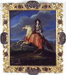 Keywords: Madame La Comtesse de Saint Geran. Oljemålning på duk - Skoklosters slott - 65219.tif Francoise Madeleine Claude St Géran f de Warignes grevinna plain text sv Madame La Comtesse de Saint Geran Francoise Madelaine Claude de Warignes 1667 g m Bernhard de la Guiche greve av Saint-Géran <br/>Helfigur till häst Röd brokadklänning svart höftlång jacka guld- och silverbroderad fodrad med grönt tyg liksom klänningen Spetshalsduk och manschetter med blå rosetter Röd hatt med pälsbräm och smycke I händerna spö och tyglar Häst med rött guldbroderat sadeltäcke I fonden slottet Versailles stallarna i förgrunden <br/><br/>På duken Me La Comtesse De S t Geran <br/>På dukens baksida N57 Pour Monseigr Le Duc Daumont <br/>I ramen lapp Princesse Chantillon <br/>Förgylld snidad ram med akantusblad En försilvrad mussla på vardera sidan Ramlistens bredd 115 mm Överst på ramens baksida 53 med blyerts <br/>Ny kilad spännram Dubblerad duk <br/><br/>Equestrian portrait of Francoise Madeleine Claude St Géran born de Warignes with a view of the Palace of Versaille in the background <br/>The portrait belongs to a series of six at Skokloster Castle all depicting Ladies of the French high court on horseback with similar landscape views in the background painted for Louis Marie Victoire Duc d´Aumont The paintings were given as a gift to or bought by the Swedish ambassador Count Nils Bielke during his stay in Paris 1679-82 The series were later transferred from Bielkes castle at Salsta to Skokloster Castle in 1756 All six paintings bear the inscription Pour Monseigr Le Duc Daumont on the back of the canvas original caption decade 1670 oil on canvas size mm 570 675 SKO Nils Bielke greve fältmarskalk 1644-1716 Antoine d' Aumont hertig André Le Nôtre in perspective 1613-2013 2013-2014 Palace of Versailles place of origin original filename sm_t11314_3150 24476 inventory number SKO 3150 65219 PD Samuel Uhrdin <gallery caption Different images of same object > File Porträtt Ryttarporträtt Madame La Comtesse de Saint Geran - Skoklosters slott - 88960 tif </gallery> Samuel Uhrdin Portrait paintings Media contributed by LSH unmatched creator Joseph Parrocel Pierre Mignard Media contributed by LSH tag as oil on canvas Media contributed by LSH 2014-06