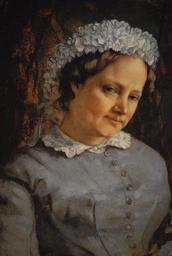 | Keywords: Madame Proudhon.jpg Artwork creator Gustave Courbet 1865 oil on canvas cm 73 59 Institution Orsay accession number RF 1958 15 object history credit line Madame Proudhon wife of radical social thinker Pierre Proudon 000PE000684 Scanned from page 80 of the following book cite book Bonfante-Warren Alexandra 2000 The Musée D'Orsay Hugh Lauter Levin Associates 320pp ISBN 0-7607-3491-7 http //search barnesandnoble com/booksearch/isbnInquiry asp z y isbn 0760734917 itm 1 Shot with color temperature set to 2500K <gallery>Madame Proudhon- Courbet jpg</gallery> PD-old-100 DEFAULTSORT 1865; Madame Proudhon Paintings by Gustave Courbet in Musée d'Orsay 19th-century portrait paintings in the Musée d'Orsay 1860s paintings by Gustave Courbet 1865 portrait paintings from France 19th-century oil portraits of women at bust length Portrait paintings of women of France Proudhon Three-quarter view portrait paintings of women facing right 19th-century fashion |