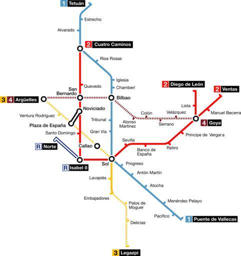 | Keywords: Madrid Metro 1940-1954.svg Ampliaciones realizadas en la red de Metro de Madrid durante el período 1940-1954 Los tramos en línea discontinua son los construidos e inaugurados durante este período 2006-08-21 own assumed Benedicto16 Maps of Madrid Metro |