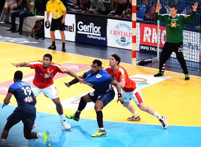 Keywords: Mads Mensah Larsen - Cédric Sorhaindo - Casper Ulrich Mortensen et Kevin Moller-20160110.jpg fr Le 10 janvier 2016 lors du match France / Danemark durant la Golden League à l'AccorHotels Arena Paris own 2016-01-10 Wenflou cc-zero France / Denmark - january 10 2016 Cédric Sorhaindo Kevin Møller Mads Mensah Larsen Casper Ulrich Mortensen |