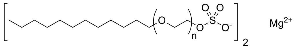 Keywords: Magnesium laureth sulfate.svg Chemical structure of magnesium laureth sulfate Own 16 34 17 February 2012 UTC Ed Edgar181 Magnesium salts of organic compounds Organosulfates Surfactants Detergents