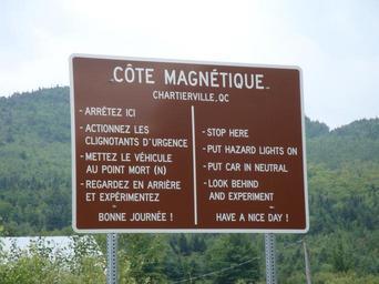 Keywords: Magnetic Hill Quebec 09.jpg en Magnetic Hill Quebec sign own DavidWBrooks 2009-07 cc-zero Gravity hills Hills of Canada Roadside attractions in Canada