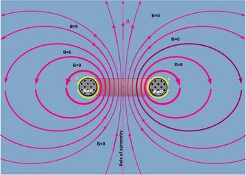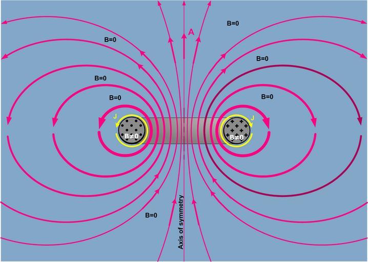 Keywords: Magnetic Vector Potential Circular Toroid.png en Representing the Magnetic Vector Potential A magnetic flux B and current density j fields around a toroidal inductor of circular cross section Thicker lines indicate contours of higher average intensity Circles in cross section of the core represent B flux coming out of the picture Plus signs on the other cross sectoion of the core represent B flux going into the picture One path is darker to serve as an example of one turn secondary own Constant314 2012-05-28 physics Magnetism diagrams Electromagnetics Electrodynamics Cc-zero |