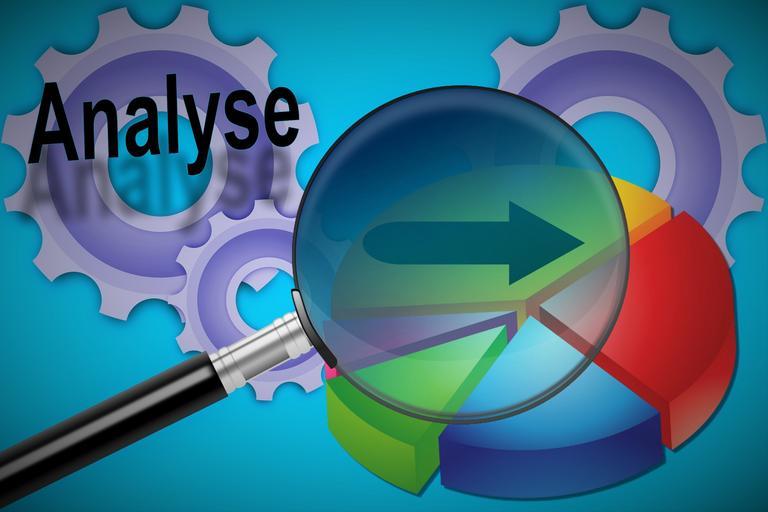 Keywords: magnifying glass gear viewing analysis growth stock exchange pie chart graph statistics share piece