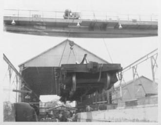 | Keywords: steel steel construction steelconstruction steel industry steelindustry structural steel structuralsteel construction equipment constructionequipment construction industry constructionindustry buildings houses blackandwhite monochrome outdoor black and white Photograph of a railroad car used to transport a smokestack built for the Magnolia Petroleum Company being lowered onto railroad tracks. The smokestack unit was built and installed by Alcorn Combustion Company out of Philadelphia, Pennsylvania, using materials provided by John Dollinger Jr., Inc. Several men are standing along the railroad track in the background. Stacks of steel beams and other materials are placed near the track. Photograph of a railroad car used to transport a smokestack built for the Magnolia Petroleum Company being lowered onto railroad tracks. The smokestack unit was built and installed by Alcorn Combustion Company out of Philadelphia, Pennsylvania, using materials provided by John Dollinger Jr., Inc. Several men are standing along the railroad track in the background. Stacks of steel beams and other materials are placed near the track. |