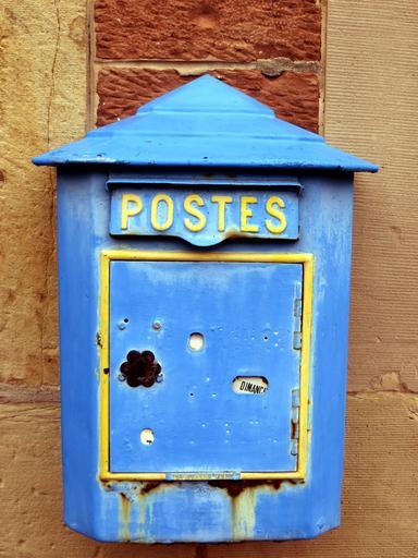 Keywords: mailbox old blue france alsace letter boxes nostalgia letters vintage stainless post metal weathered rusted