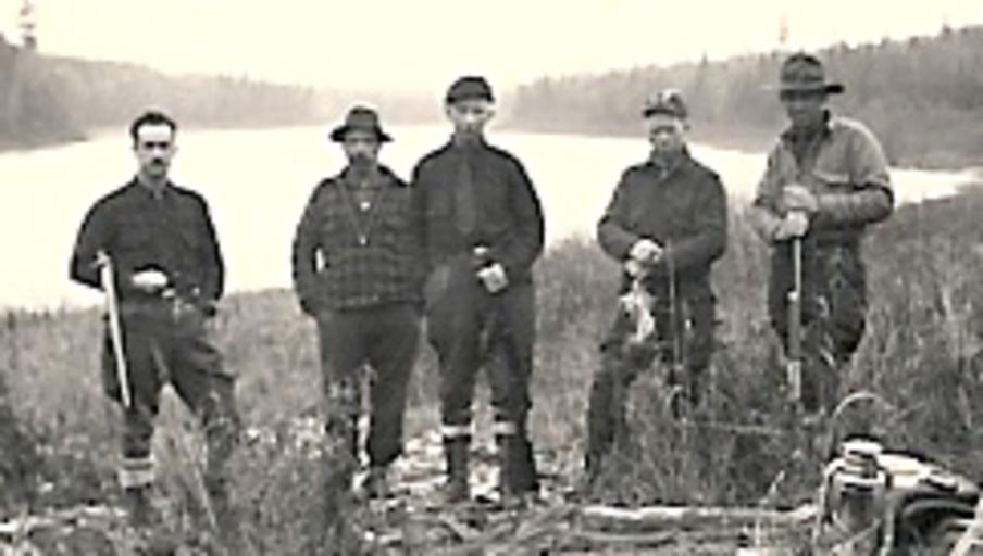 | Keywords: MaineHuntingParty1941.png en Maine Allagash wilderness hunting party on Umsaskis Lake in the autumn of 1941 Dave Jackson 1902-1978 on the right is holding a self loading Model 10 Winchester rifle chambered for the 401 Winchester Self-Loading cartridge Albert Wellman 1880-1957 in the center is holding a lever-action Model 94 Winchester rifle chambered for the 30-30 Winchester cartridge Albert Wellman Jr 1911-1972 on the left is holding a bolt-action National Match M1903 Springfield rifle chambered for the 30-06 Springfield cartridge old family photo Albert Wellman 1941-11-00 cc-zero Allagash Maine Maine in the 1940s Hunting in the United States |