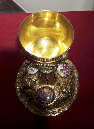 Keywords: Mair Chalice with passion of Christ set with gemstones 03.jpg Artwork Creator Michael Mair between 1695 1700 gilt enamel turquoise garnet topazes amethysts silver cm 29 5 10 19 5 Institution Museum of the Warsaw Archdiocese 0 accession number MAW-6729 object history ProvenanceEvent 1701 gift Cathedral of Saint John Warsaw Justynian Bartłomiej Zaruski abbot of Sulejów ProvenanceEvent 1938 transfer Museum of the Warsaw Archdiocese ProvenanceEvent 1944 theft Nazi Germany ProvenanceEvent 1952 restitution PRL Poland ProvenanceEvent 1952 deposit National Museum in Warsaw ProvenanceEvent 1998 transfer Museum of the Warsaw Archdiocese credit line The chalice encrusted with gemstones with six enamelled plaques depicting scenes from the Passion of Christ as described in the New Testament the Crowning with Thorns Ecce Homo the Crucifixion the Last Supper the Agony in Gethsemane and the Flagellation http //poland2015 chnmuseum cn/en/ poland2015 chnmuseum cn https //pl pinterest com/pin/418905202819377091/ pl pinterest com own Cc-zero DEFAULTSORT 1695-1700; Chalice with passion of Christ set with gemstones Chalice with passion of Christ by Michael Mair Museum of the Warsaw Archdiocese |