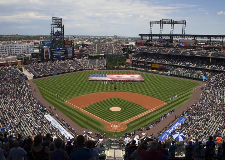 Keywords: major league baseball baseball stadium game park field fun colorado rockies crowd players athlete ball sports military national anthem mile high stadium