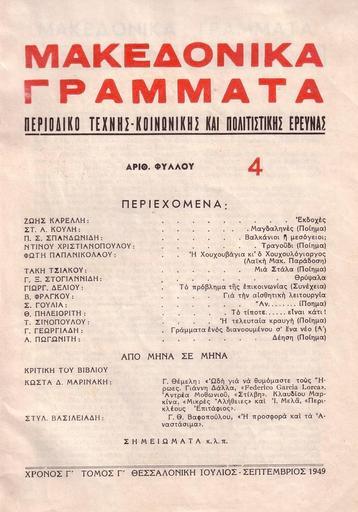 Keywords: Makedonika Gramata.jpg Пъ ва ст аница на списание акедоника Г амата http //logotexnika-epikaira blogspot fr/2012/03/1912-2012-1949 html 1949 Makedonika Gramata PD-old Newspaper front pages Newspapers of Thessaloniki