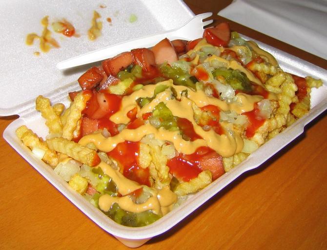 Keywords: Makkaraperunat2.jpg Makkaraperunat-portion cubed sausage french fries and excessively ketchup and mustard own User Argus_fin Fast food in Finland Ketchup and mustard Sausages with mustard Sausages of Finland French fries in Finland